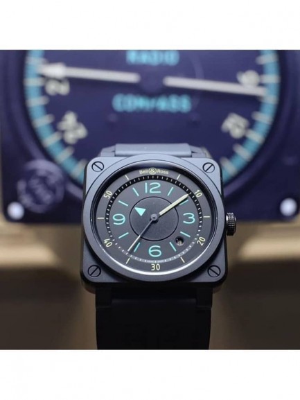 Bell & Ross BR 03-92 Bi-Compass Limited Edition Black Ceramic Rubber Strap Watch BR0392-IDC-CE/SRB