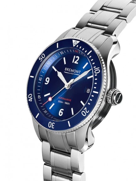 Bremont are a prestigious watch brand committed to designing and manufacturing stunning British timepieces, tested beyond endurance with uncompromising quality, to create distinctive watches that are equally at home in the boardroom, as above the clouds or below the sea. The Supermarine is a professional dive watch inspired by the Aircraft company Supermarine who prototype’d the Spitfire. The automatic chronometer movement with 40 hour power reserve is housed in a slimline stainless steel case, featuring uni-directional rotating ceramic bezel and sapphire crystal glass. Water resistant to 300 metres featuring luminescence and date window, complete with masculine bracelet and secure deployment clasp. This handsome feat of engineering brings together the art of watchmaking with the very best of technical innovation, precision and durability.