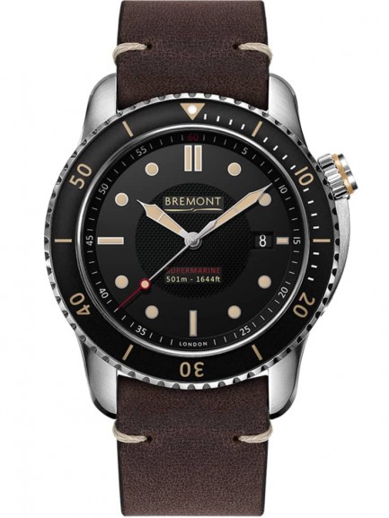 Bremont have successfully redesigned their original diving watch into this modern, useful piece of equipment. The black dial display features coloured luminescent hands and matching hour markers which can be seen in low lit conditions along with a functioning date window. Fastens comfortably to any wrist using a brown genuine leather strap.