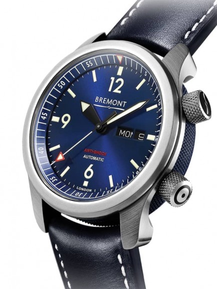 Bremont are a prestigious watch brand committed to designing and manufacturing stunning British timepieces, tested beyond endurance with uncompromising quality, to create distinctive watches that are equally at home in the boardroom, as above the clouds or below the sea. The U-2 Pilot automatic chronometer is inspired by the Martin Baker ejection seat and withstanding such shocks. The movement can be seen through the sapphire crystal caseback and is secured by Bremont’s patented anti shock rubber mounts. Crafted from hardened stainless steel, featuring scratch resistant sapphire crystal glass and comfortable blue leather strap. The round blue dial boasts bold luminescent hands, hour markers and a day, date window for extra functionality. This handsome feat of engineering brings together the art of watchmaking with the very best of technical innovation, precision and durability.