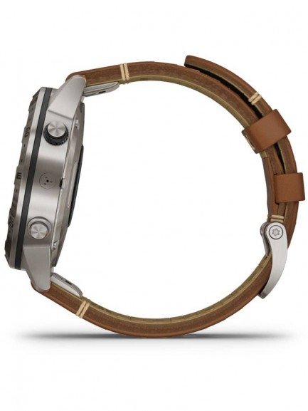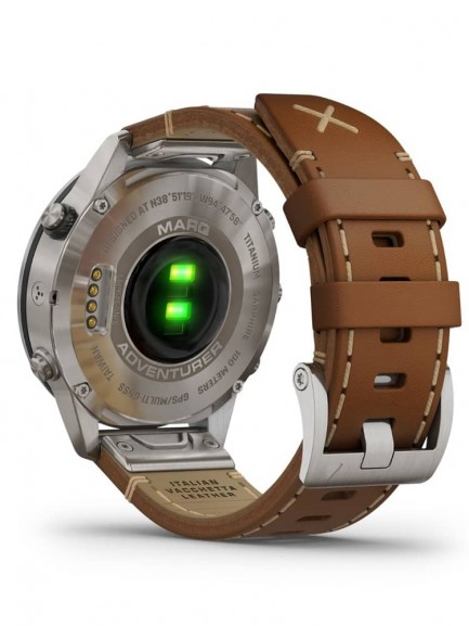 Whether you climb the highest peaks or are inspired by those who do, MARQ Adventurer compels you to push further. No other modern tool watch puts smart features, topographic maps and real-time ascent data right at the wrist. Should adventure take you to higher altitudes, a Pulse Ox sensor monitors your blood oxygen saturation levels. Stay true to your path with built-in ABC navigation sensors and an etched, compass bezel. An Italian vacchetta leather strap ages beautifully to elevate your style, while its articulated design ensures an exceptional fit as you go to extremes. The finer details, such as the wide-gauge signature ”X” stitch, impart character and unparalleled durability. So you can stand on top of the world with an extraordinary instrument, crafted to explore it.