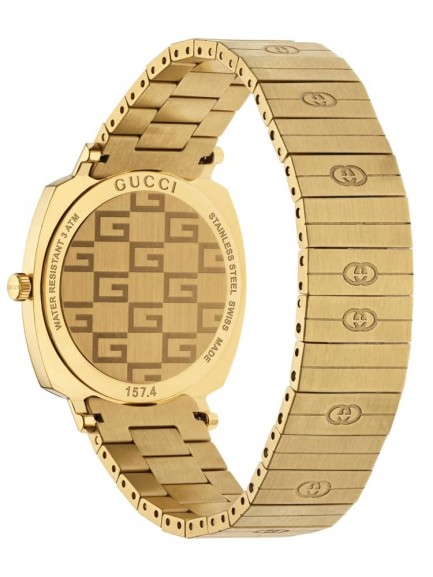 The stunning unique design of this eye catching Grip timepiece blends timeless appeal with a highly contemporary style. The watch features a covered dial design that is crafted in stainless steel with a gold PVD plating for a sleek and modern look, the piece is finished with a gold plated bracelet and a fold over clasp fastening.