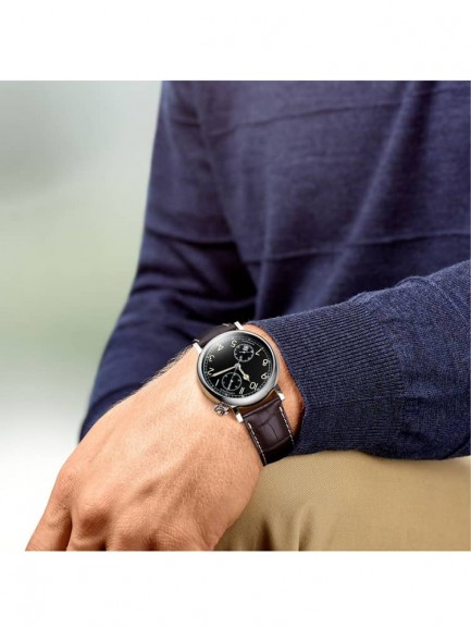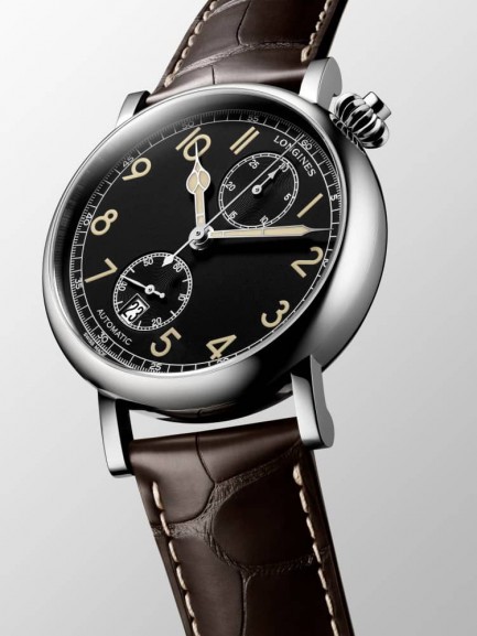 This Longines Heritage series watch pays homage to the brands history and has a 41mm stainless steel case and dark brown leather strap with buckle fastening. The black angled dial has Superluminova coated dial hands powered by the L788 Caliber automatic movement which also has a 54 hour power reserve.