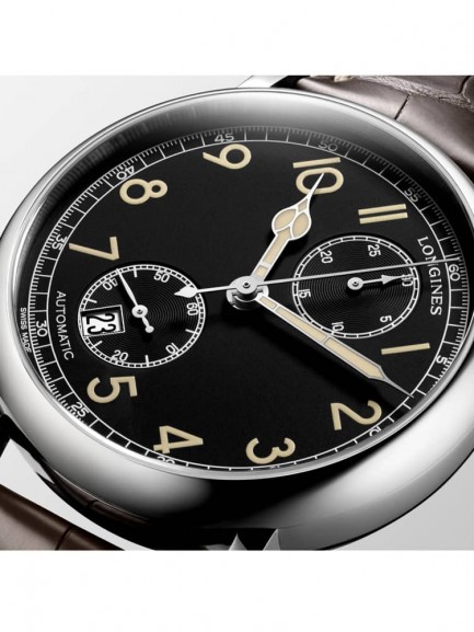 Longines Mens Heritage Classic Automatic Chronograpgh Black Leather Strap Watch L2.827.3.73.7