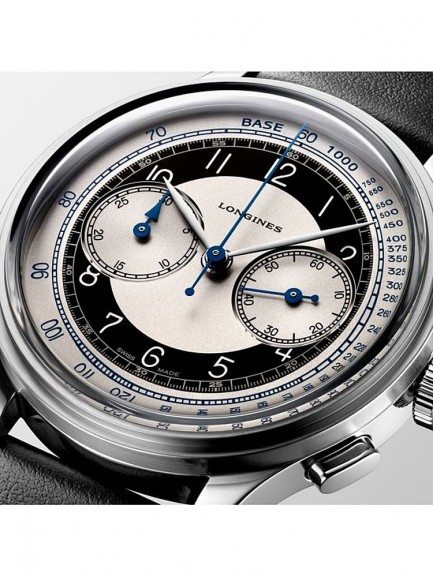 Introducing the Heritage Classic Automatic Chronograph strap watch, an excellent Swiss made timepiece with attractive minimalist design. Featuring a silver and black chronograph dial with painted Arabic numerals, blue steel and polished silver tone hands which is finished with a black leather strap which complements the dial.