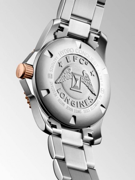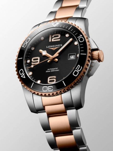 The Longines L3.781.3.58.7 HydroConquest watch combines a 41mm round shaped stainless steel case and two tone bracelet with a fold over clasp and integrated diving extension. It has a black analogue dial with a date display and Super-Luminova coated hands which are protected beneath scratch resistant sapphire crystal glass with several layers of anti-reflective coatings applied to both sides. Power is generated by the Calibre L888 automatic movement with a power reserve of approximately 72 hours. This model also has a lug distance of 21mm, a ceramic bezel, and a water resistance of up to 300 metres.