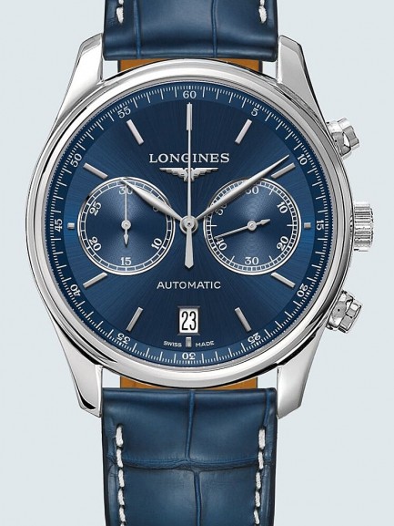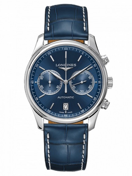Introducing the Master Automatic Chronograph strap watch, an excellent Swiss made timepiece with an attractive classic design. Featuring a sunray blue chronograph dial with polished silver tone hands and applied indexes which is finished with a blue Alligator strap which complements the dial perfectly.