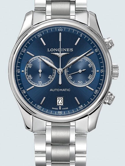 Introducing the Master Automatic Chronograph bracelet watch, an excellent Swiss made timepiece with an attractive classic design. Featuring a sunray blue chronograph dial with polished silver tone hands and indexes which is finished with a hard wearing stainless steel bracelet which complements it perfectly.