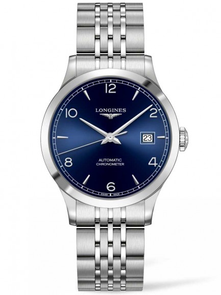 The Longines Record range is committed to providing timeless elegance and precision timekeeping while bridging the gap between tradition and innovation. Expert Swiss craftsmanship is showcased in scratch resistant sapphire crystal glass, polished and brushed stainless steel. The impressive chronometer certified automatic movement ensures accurate timekeeping while boasting 64 hours power reserve, 21 jewels and a date window on the attractive minimalist blue dial. Complete with a handsome bracelet for a secure fit.