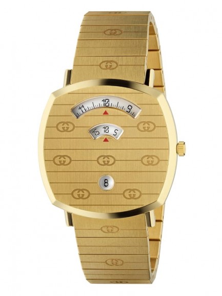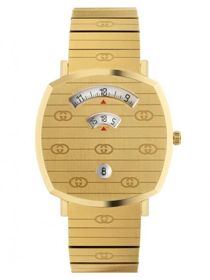 The stunning unique design of this eye catching Grip timepiece blends timeless appeal with a highly contemporary style. The watch features a covered dial design that is crafted in stainless steel with a gold PVD plating for a sleek and modern look, the piece is finished with a gold plated bracelet and a fold over clasp fastening.