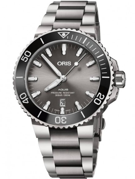 The new Aquis mens timepiece features a strong titanium bracelet and casing which surrounds the grey gradient dial complete with luminescent hands and hour markers and a functioning date window.