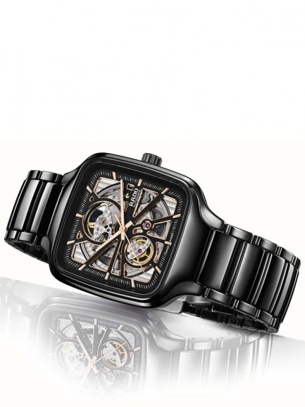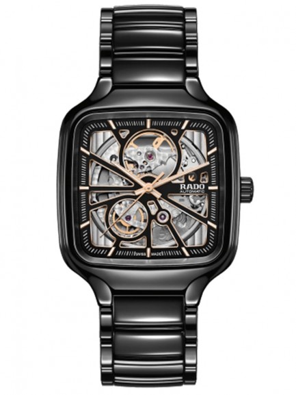 This True Square timepiece from Rado features a high-tech ceramic case that is light, scratch resistant and comfortable to wear. Powered by an automatic movement, the piece features a skeletal open heart design with an exhibition caseback. The piece is finished with a high-tech ceramic bracelet and a push deployment folding closure.