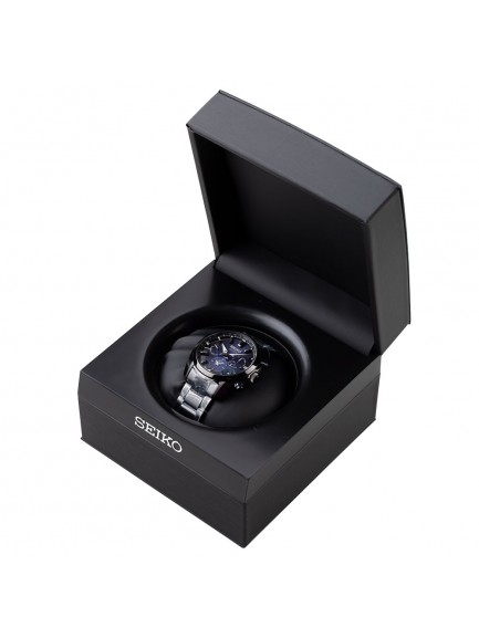 This timepiece takes its inspiration from the skies above where Astron’s technology gains its energy; the gradation of colours and the glitter of the dial reflect an astronomical nebula.