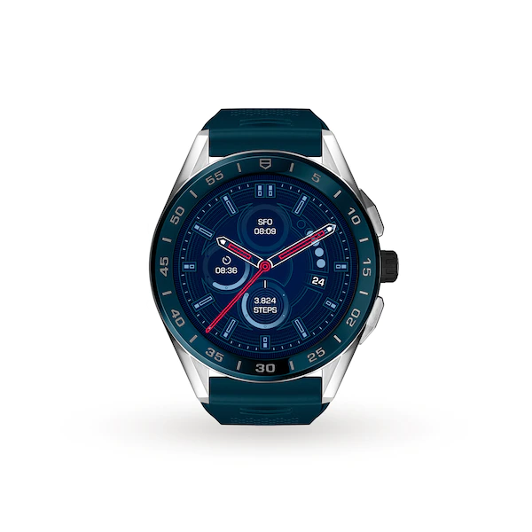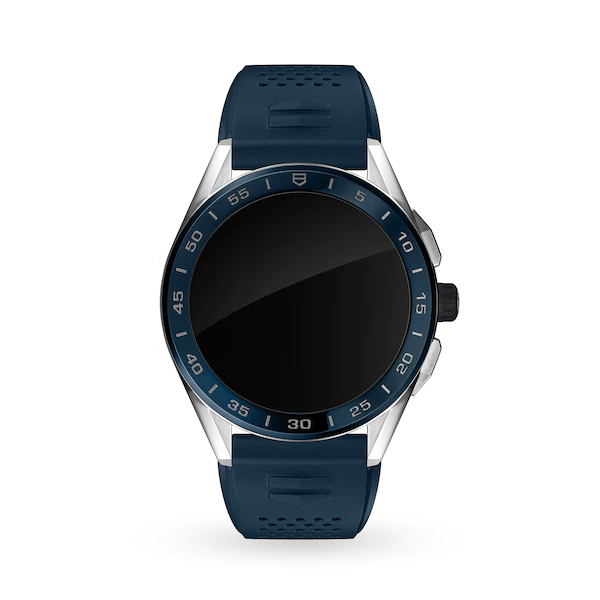 Made to be a companion through various terrains, this extraordinary timepiece comes integrated with the exclusive TAG sports application. The ability to monitor speed, pace, heart rate, distance and route are all available at the touch of a finger. Finished with a blue rubber strap, this timepiece is perfect for those sports enthusiasts.