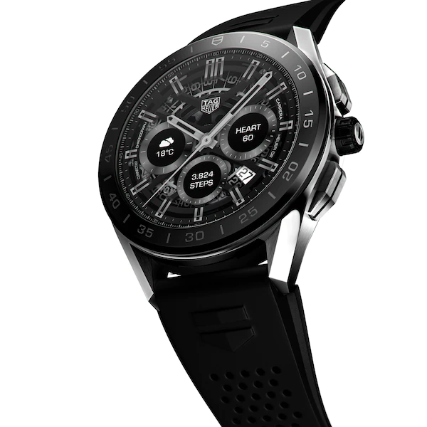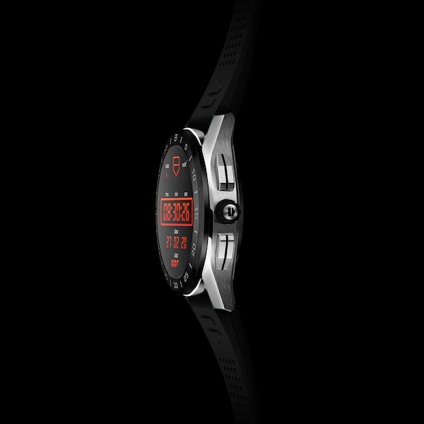 By combining the elegance of its chronographs with the best of connected technology, TAG Heuer is redefining Swiss watchmaking. A stainless steel case, scratch-resistant sapphire crystal and ultra-light black ceramic bezel: innovative high-end watchmaking materials for a 45 mm timepiece that is water resistant to 50 metres.